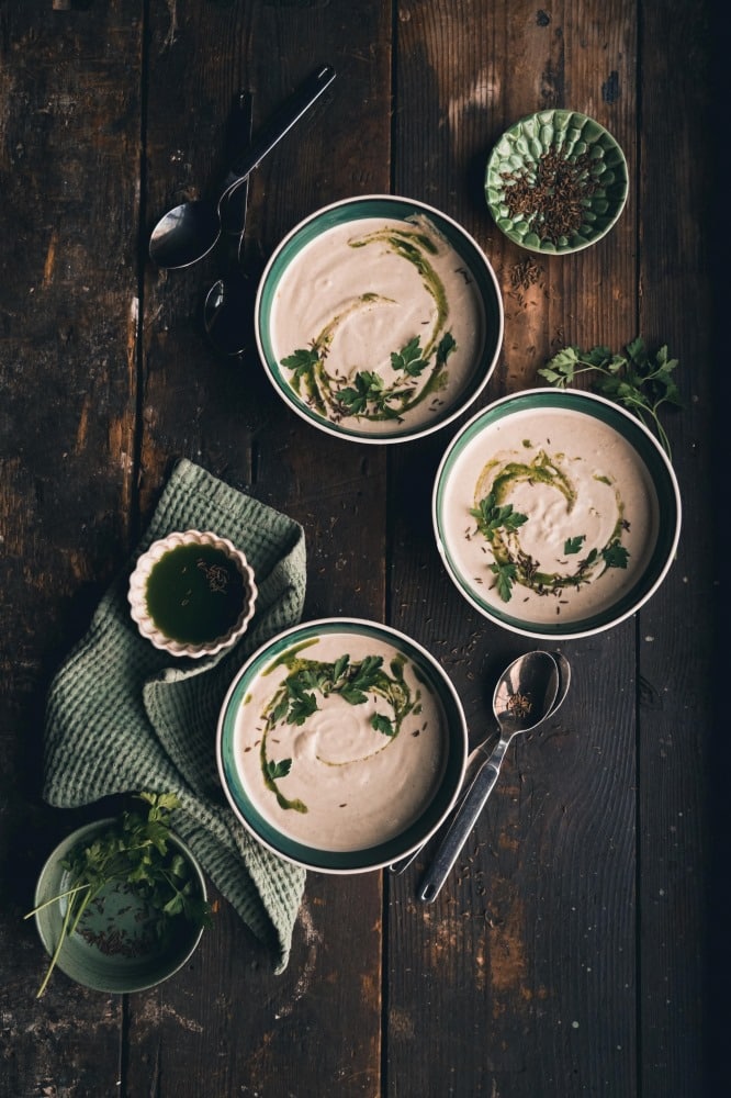 Creamy Celery & Caraway Soup with Yoghurt Swirl
