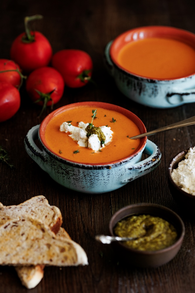 Tomato, Pesto & Cottage Cheese Soup