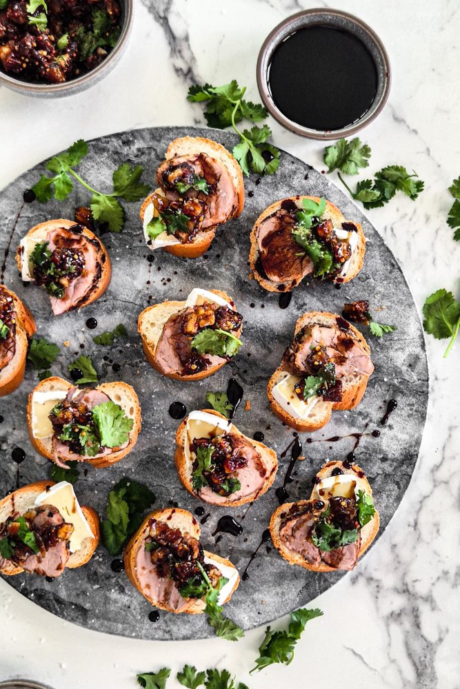 Sous Vide Pork Tenderloin Crostini with Date & Coriander Relish